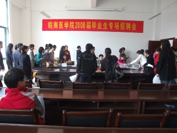 北京丰台等社区卫生服务中心十分重视对人才的选拔,高度评价我校历届毕业生,特来我校选聘应届优秀本科毕业生。招聘会上,简要的宣讲后,负责人详细地回答了同学们的提问,接着从130多份简历中筛选出35名毕业生进行面试。面试过程中,负责人详细地考察了每个毕业生的专业知识、人文素质、应变能力等方面的情况,最终确定10名优秀毕业生。