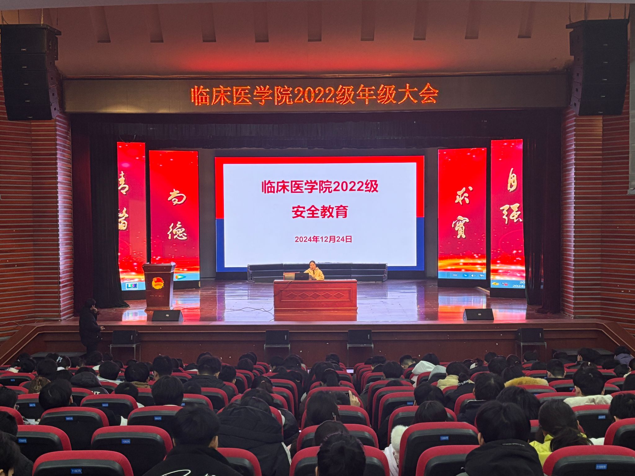 12月24日晚,临床医学院2022级在大学生活动中心召开期末年级大会,聚焦学生成长与发展核心需求,邀请校关工委“五老”报告团王雪琴老师、第一附属医院陶雨琦老师作生涯规划指导和经验分享,年级辅导员及2022级全体同学共700余人参会。