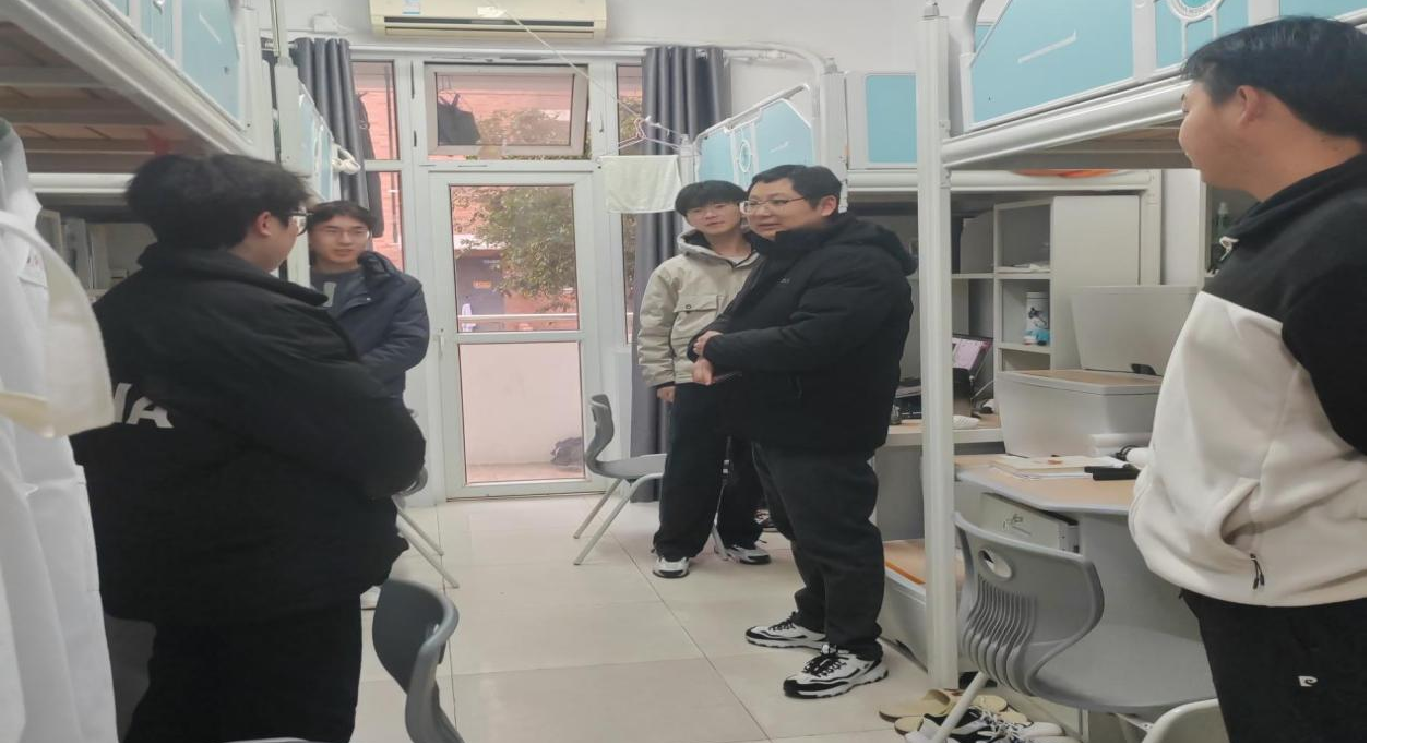 关爱学生,确保安全。2月24日-25日,学院领导和各年级辅导员分组对学院学生宿舍进行全覆盖走访。在走访查寝过程中,学院领导和老师与同学们深入交谈,面对面了解大家学习生活状态,关心他们的身心健康,并叮嘱同学们注意宿舍安全,保持内务整洁,加强文明宿舍创建,共同营造积极向上的宿舍文化氛围。同时,教育引导大家开学季要谨防电信诈骗、网络贷款、刷单等骗局,增强自我防范意识,提升自我保护能力。