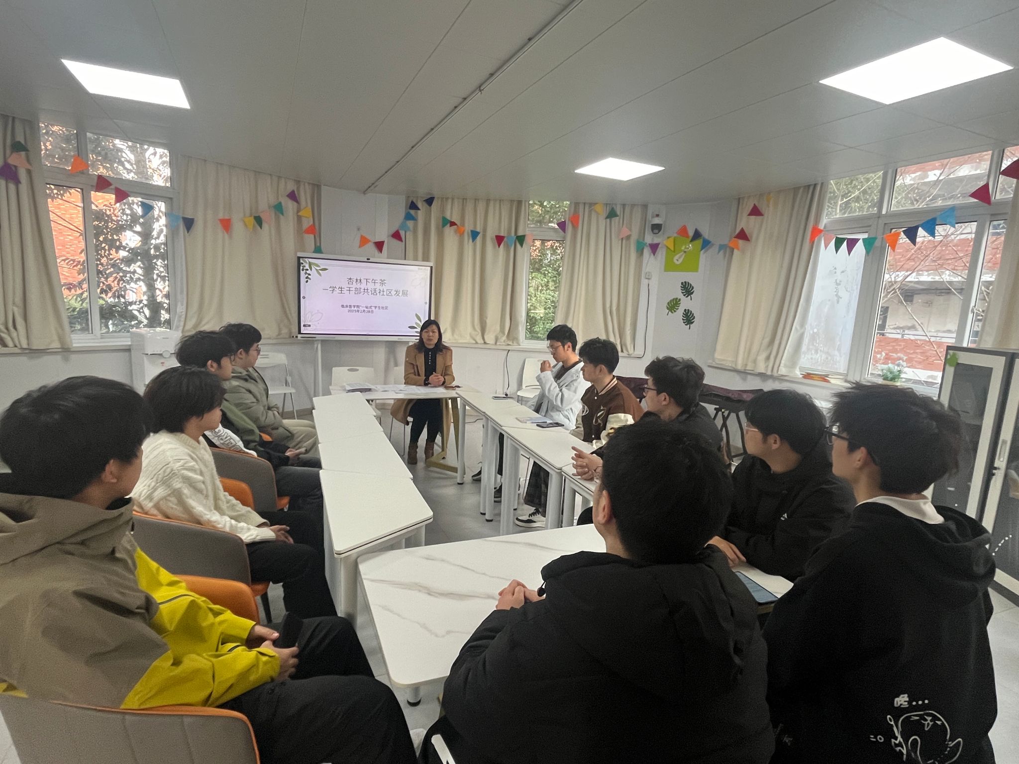 为进一步了解学生思想动态,促进“一站式”学生社区内涵建设,2月28日,临床医学院 “一站式” 学生社区开展第五期“杏林下午茶”活动。学院党委副书记、“一站式”学生社区导师陶香香,9号宿舍楼层长、寝室长代表参加座谈会。