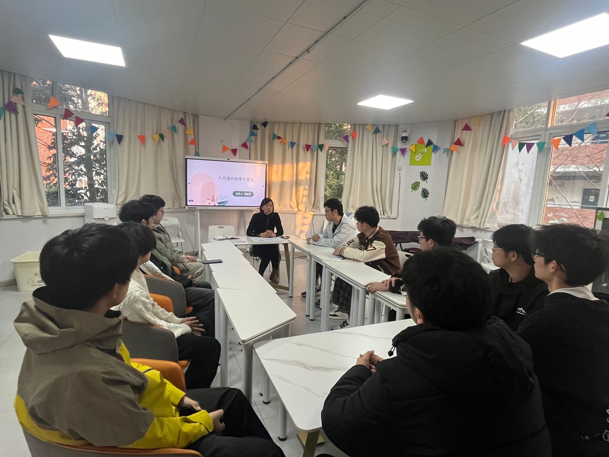陶香香细致解答了同学们提出的问题,并从六尺巷故事的背景、内涵和价值观念、现代启迪和应用三个方面阐述了六尺巷的故事和意义,带领同学们重温了习近平总书记考察安徽走访六尺巷时的重要讲话。她强调,六尺巷不仅是一处地名、一个典故,还是汲古言今的思政课堂,体现了先人化解矛盾的历史智慧。同学们要从六尺巷中感受中国“和文化”,带头弘扬中华优秀传统文化,让礼让、以和为贵的传统美德在“一站式”学生社区的建设和管理中发挥作用,营造和谐生活学习环境。