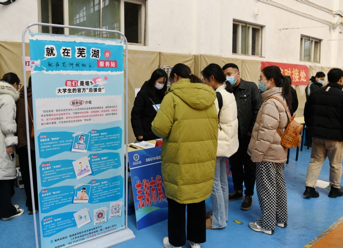 招聘会现场人头攒动,场面火爆。用人单位通过展示信息展板、发放宣传册等方式向同学们详细介绍单位概况、福利待遇、人才需求和发展空间等基本情况,并对咨询同学的提问进行一一解答。毕业生手持精心准备的自荐书和简历与用人单位进行沟通交流,积极向心仪的单位推荐自己。部分低年级同学也加入到求职的人群进行观摩学习,提前感受就业氛围,尽早规划自己的职业生涯。同时,学生工作部、各二级学院负责人和毕业生辅导员、班主任等在现场与用人单位积极交流沟通,了解岗位需求,介绍学院专业特色,向用人单位推介毕业生。此外,芜湖市公共就业和人才服务中心还设立政策宣传台,宣传芜湖市紫云英人才政策和人社局政策,零距离服务广大毕业生。
