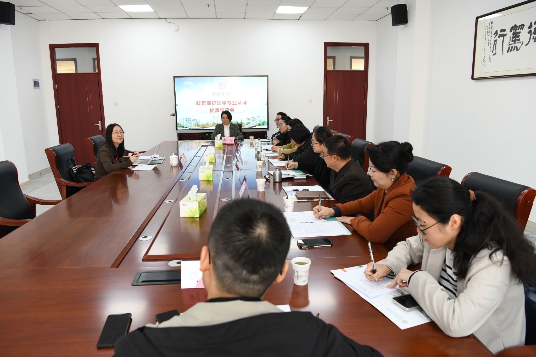 护理学院负责人围绕护理学专业认证自评工作,从学校和学院基本情况、宗旨与结果等八个方面进行了详细汇报,并对专家组成员的现场提问进行回答。