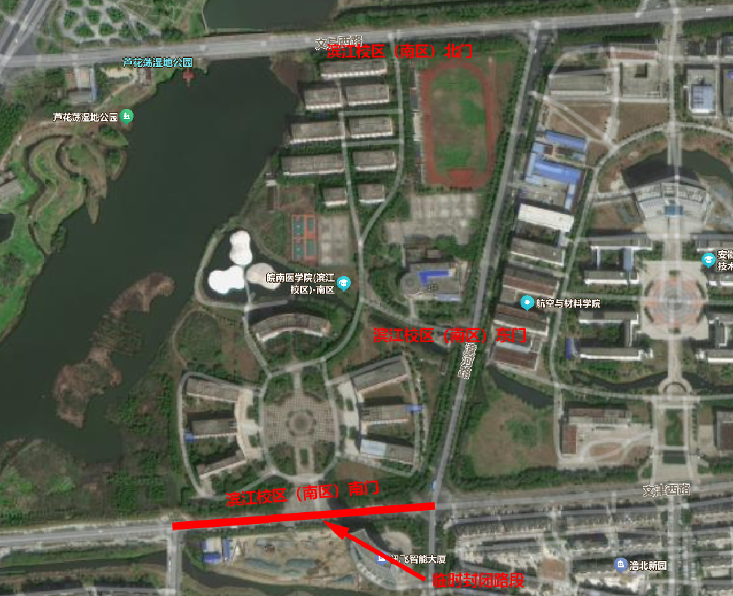 文津路西路道路改造项目工程正在施工。接施工单位通知,将对文津西路(九龙路至漳河路段)东西两侧实行全封闭施工(附图),届时学校滨江校区(南区)南门实行临时封闭。现将有关事项通知如下: